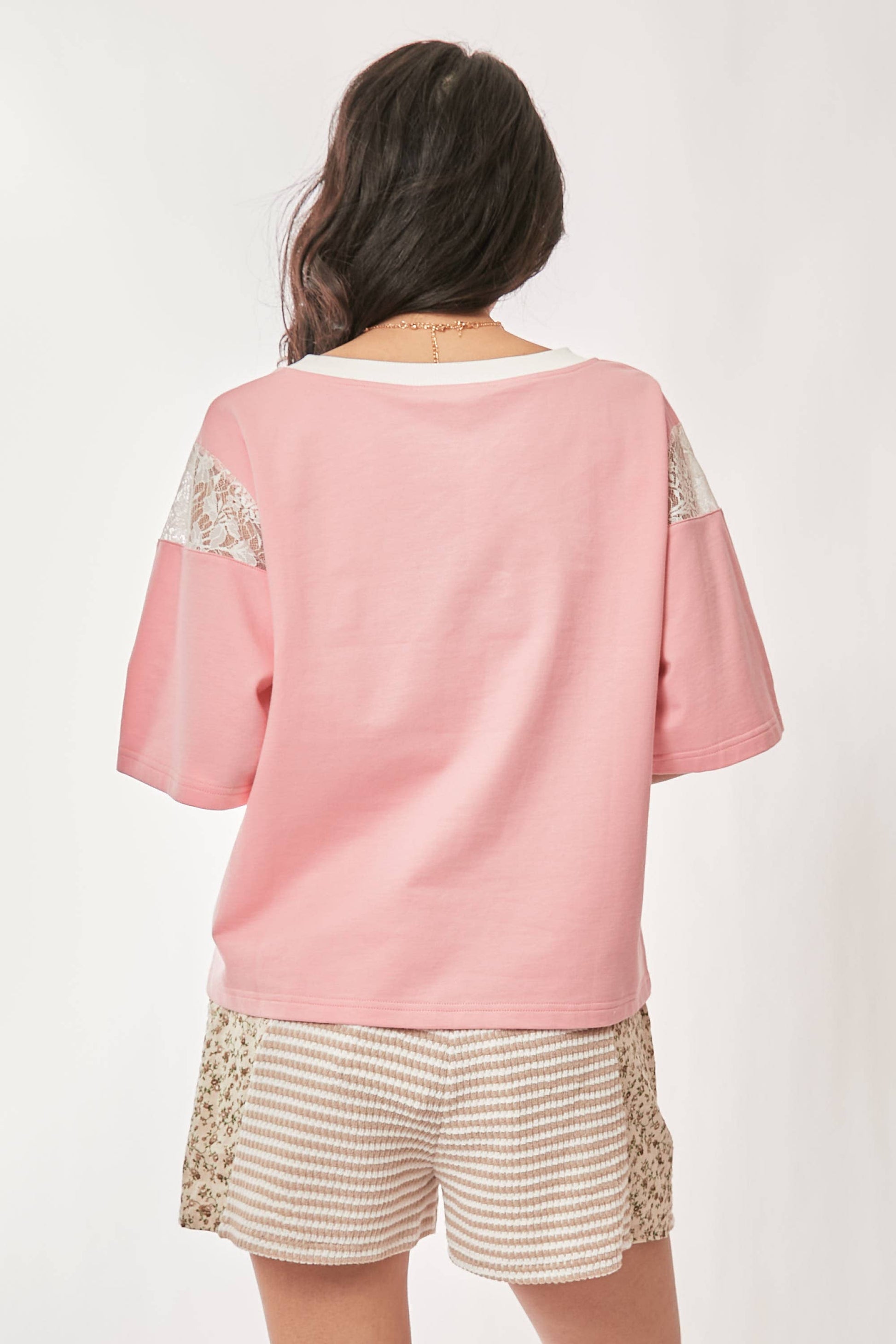 LACE EMBROIDERED RIBBON PATCH SHORT SLEEVE TOP